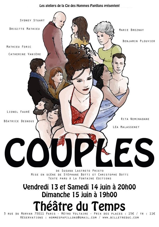 Mise en scène avec Christophe Botti de "Couples" de Susana Lastreto Prieto au Théâtre du Temps avec la troupe de l'atelier théâtre de la Compagnie des Hommes Papillons.
