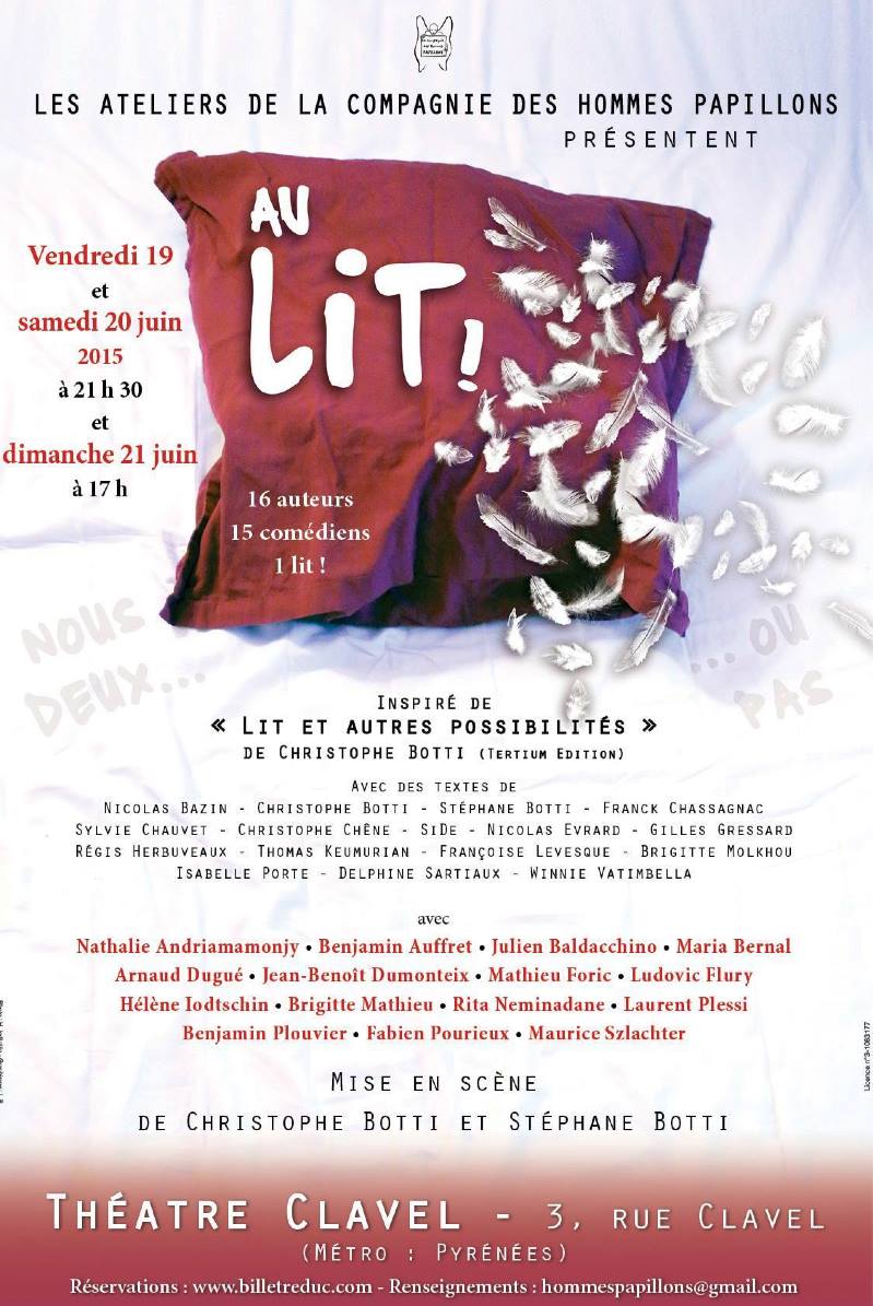 Co-mise en scène avec Christophe Botti de la pièce "Au lit !" au Théâtre Clavel (Paris)